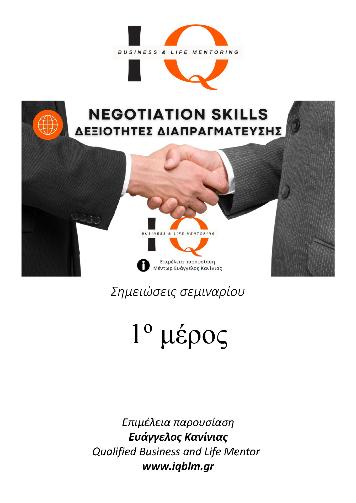 - Εκμάθηση συγκεκριμένων βασικών τεχνικών και δεξιοτήτων διαπραγμάτευσης