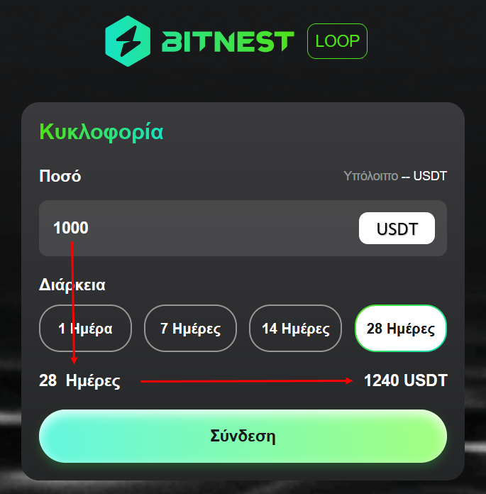 Παράδειγμα απόδοσης 1.000$ USDT για 28 ημέρες με επιτόκιο 24% !