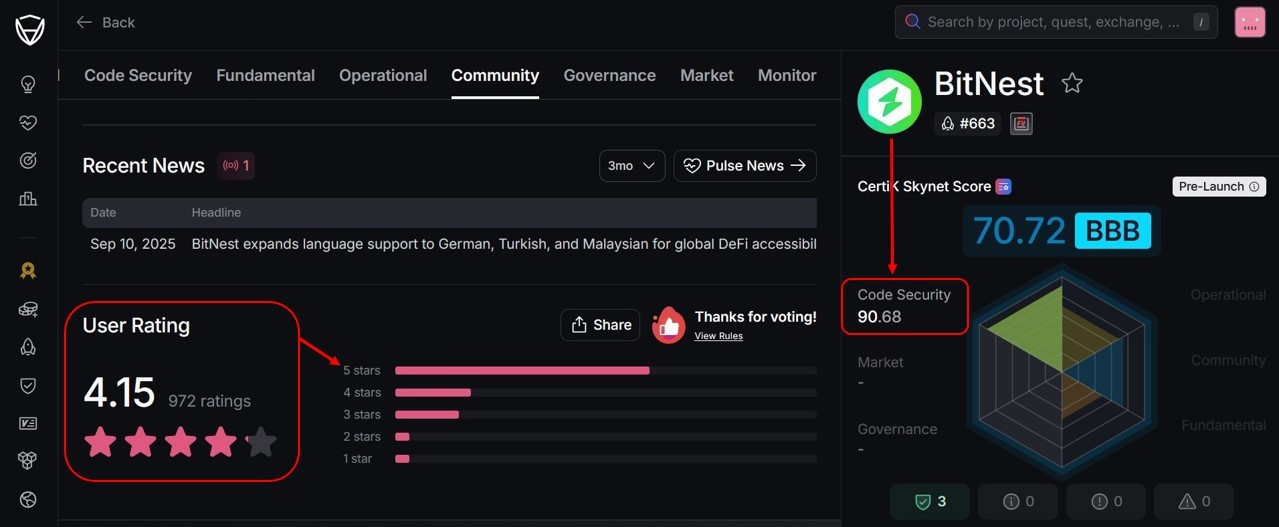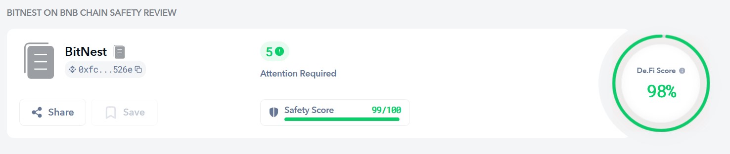 Δείκτης Ασφάλειας - Safety Score on BNB CHAIN - της BITNEST από την De.Fi