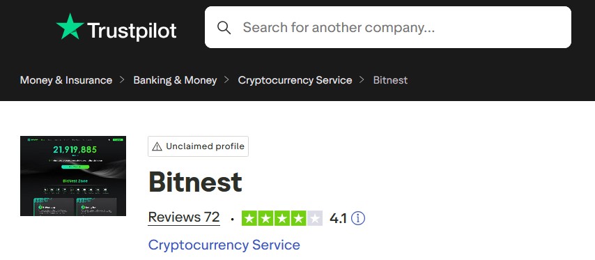 Αξιολόγηση Ασφάλειας της BITNEST από την TrustPilot