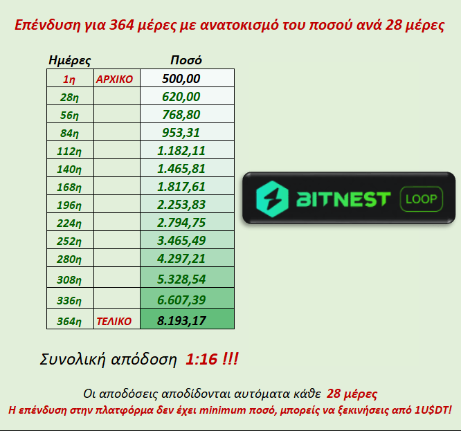 Στη BITNEST δεν έχετε να δοκιμάσετε κάτι, γιατί δουλεύει ήδη δυόμιση χρόνια (03/2023), αριθμώντας σήμερα πάνω από 2 εκατομμύρια επενδυτές σε 200 χώρες ανά τον κόσμο, που την εμπιστεύονται και κερδίζουν καθημερινά, ούτε έχετε να γραφτείτε κάπου με προσωπικά στοιχεία, πληρώνοντας επαναλαμβανόμενες συνδρομές, πακέτα μέλους και έξοδα ανάληψης ! Αυτό που πρέπει να κάνετε, είναι να μάθετε πώς να βάζετε να δουλεύουν με ασφάλεια τα χρήματα για εσάς κι όχι εσείς για αυτά. Να σας αποδίδουν δηλαδή, σίγουρα και προκαθορισμένα κέρδη κάθε μήνα !